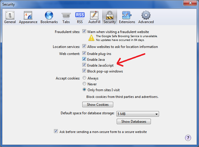 Enable JavaScript in Apple’s Safari