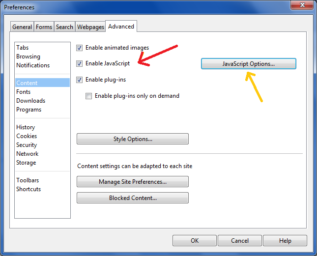 Enable JavaScript in Mozilla Firefox