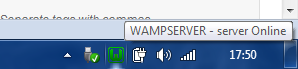 Step 3: Start WAMPServer by clicking the shortcut icon created on your desktop. Again, use Run as administrator if available. The icon appears in Windows Notification Area (right-bottom) turning from Red to Orange to Green. Red denotes that the server is inactive/disabled. Orange indicates the server is processing or starting up. Green indicates the server is active and running.