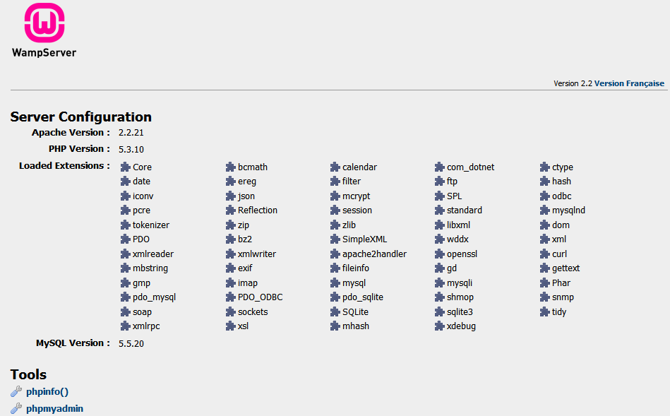 Example: WAMPServer 2.2D has Apache 2.2.21, Php 5.3.10, Mysql 5.5.20, XDebug 2.1.2, XDC 1.5, PhpMyadmin 3.4.10.1, SQLBuddy 1.3.3 and webGrind 1.0.